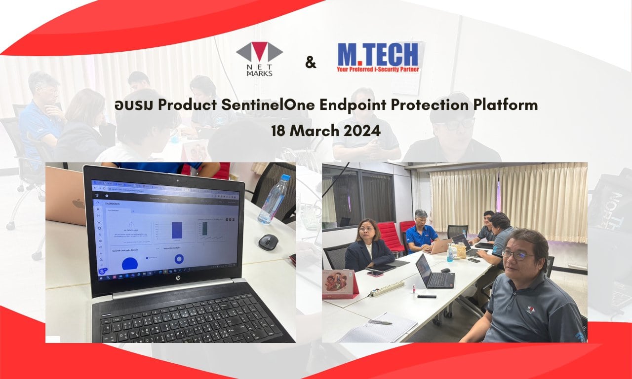 ทาง บริษัท เน็ตมาร์ค (ประเทศไทย) จำกัด ให้ความสำคัญในเรื่องเทคโนโลยีความปลอดภัยทางไซเบอร์ขององค์กรอย่างมาก จึงได้จัดให้มีการอบรม SentinelOne Endpoint Security Platform โดยได้รับคำแนะนำจาก Product Consultant จาก บริษัท M.Tech ซึ่งเป็นผู้ให้บริการโซลูชันความปลอดภัยทางไซเบอร์และประสิทธิภาพเครือข่ายชั้นนํา โดยโซลูชันของ SentinelOne เป็นการรวมความสามารถของ Endpoint Detection and Response (EDR) เช่น PC, Server กับ Network Detection and Response (NDR) เช่น Firewall, SIEM, NAC เข้าด้วยกันในโซลูชันเดียว ที่เรียกว่า Extended Detection and Response (XDR) โดยอาศัยความสามารถของ Machine learning และ AI เข้ามาใช้ในการวิเคราะห์หาความสัมพันธ์ของเหตุการณ์ต่างๆ เพื่อช่วยในการตรวจจับและป้องกันภัยคุกคามไซเบอร์ ทำให้องค์กรสามารถค้นหาภัยคุกคามที่พยายามบุกรุกเข้าสู่ระบบได้อย่างรวดเร็วและแม่นยำมากขึ้น SentinelOne ยังมี Singularity XDR Platform ช่วยให้องค์กรสามารถมองเห็นช่องทางที่ hacker ใช้โจมตีได้ดียิ่งขึ้น อีกทั้งยังทำงานร่วมกับอุปกรณ์อื่นๆ ที่องค์กรมีอยู่เพื่อเพิ่มประสิทธิภาพในการรักษาความมั่นคงปลอดภัยบนอุปกรณ์ปลายทางให้มีประสิทธิภาพ และช่วยให้ผู้ดูแลระบบสามารถติดตามบริบทของการโจมตีได้อย่างรอบด้าน