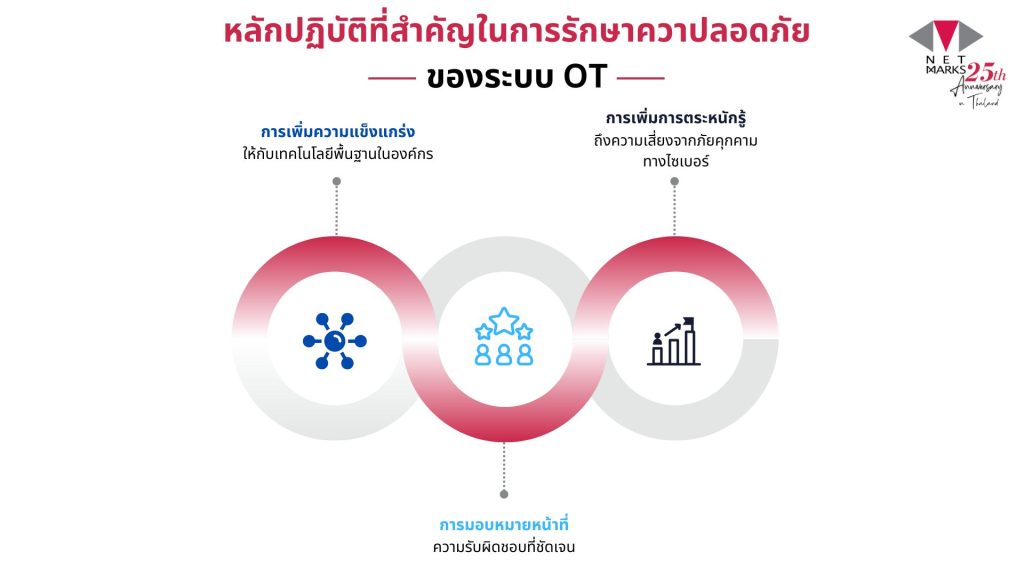 เพื่อป้องกันภัยคุกคามในยุคดิจิทัล องค์กรต้องพัฒนาตัวเองในการรักษาความปลอดภัยของระบบ OT โดยมีหลักปฏิบัติสำคัญ 3 ประการ