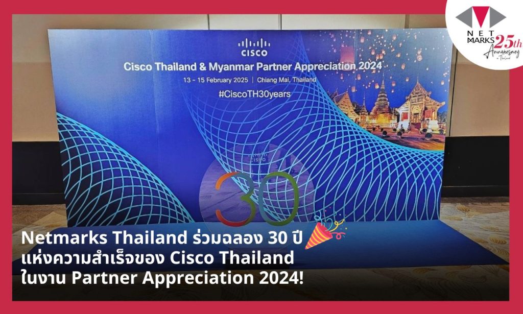 Netmarks Thailand ร่วมฉลอง 30 ปีแห่งความสำเร็จของ Cisco Thailand ในงาน Partner Appreciation 2024! 🎂🎊 Netmarks (Thailand) รู้สึกเป็นเกียรติและภาคภูมิใจที่ได้เข้าร่วม Cisco Thailand & Myanmar Partner Appreciation 2024 ซึ่งจัดขึ้นระหว่างวันที่ 13-15 กุมภาพันธ์ 2025 ณ จังหวัดเชียงใหม่
