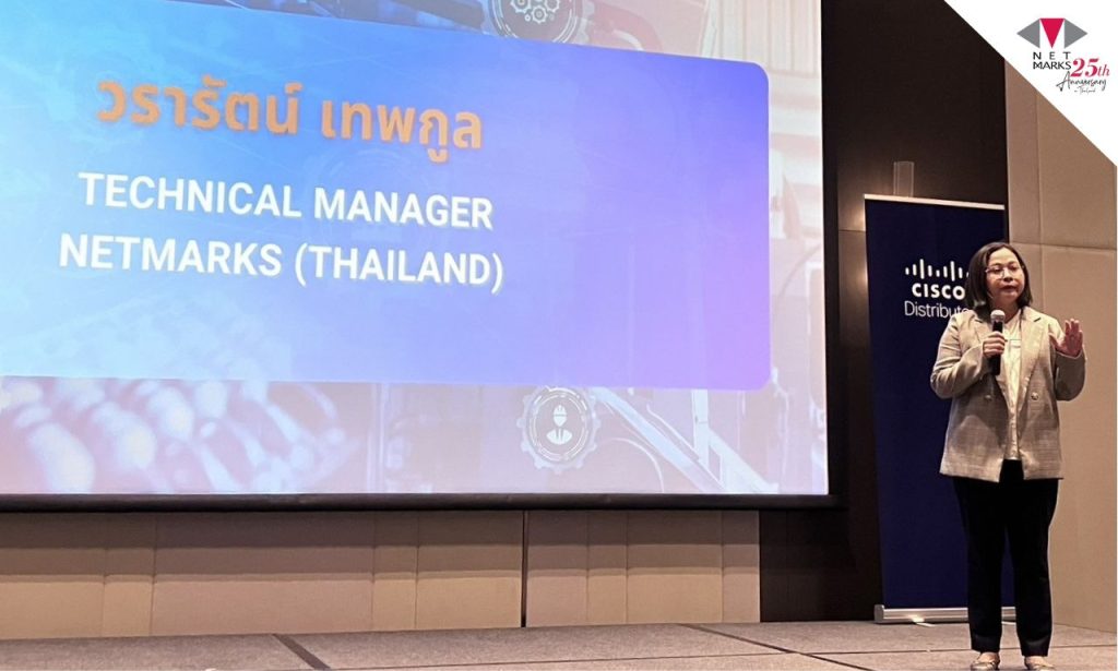 บรรยากาศภายในงานเริ่มต้นด้วยการกล่าวเปิดงานโดย คุณลินดา เจียมกรกต Assistant General Manager – Sales บริษัท Netmarks ภายในงานได้รับเกียรติผู้เชี่ยวชาญจาก Cisco System โดยคุณเมธี รัตนวัฒนประกิต Account Executive – Security ที่มาบรรยายในหัวข้อ “The Cisco Security Vision for Industry 4.0” เจาะลึกยุทธศาสตร์ความปลอดภัยของ Cisco สำหรับโลกอุตสาหกรรมแห่งอนาคต